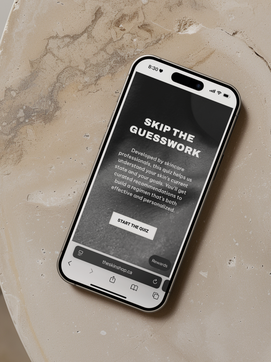 A key part of The Skin Shop’s digital experience was creating a customized skin quiz that functioned like a mini consultation. Sara’s philosophy has always been education first and product recommendations second, and we wanted the quiz to reflect that. It needed to feel professional and thoughtful, not gimmicky or generic.