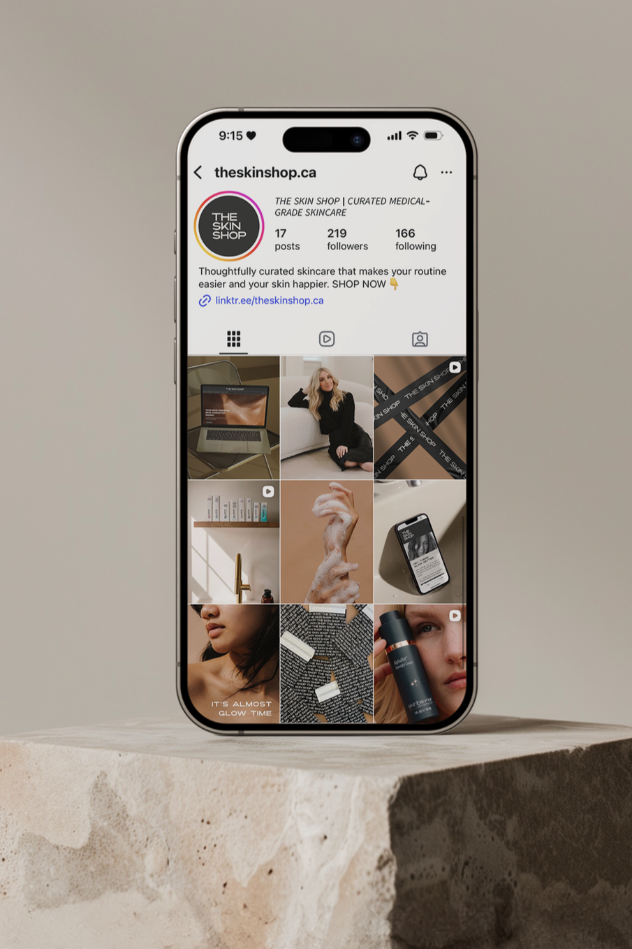 The social strategy for The Skin Shop needed to strike a balance between education, aesthetic appeal, and personality. The brand is high-end and editorial, but also has a slightly cheeky, confident tone that keeps it from feeling too serious. My goal was to bring that blend to life on Instagram and create a feed that felt polished, intentional, and unmistakably The Skin Shop.