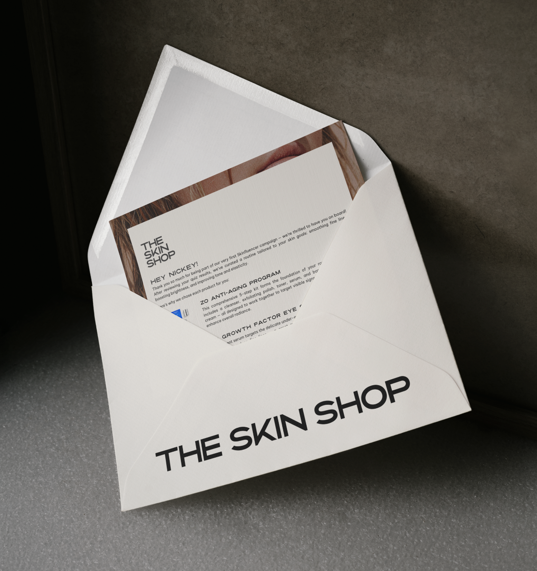 To support the launch of The Skin Shop and build early visibility in a meaningful way, I created a full influencer program from scratch. This included developing the structure of the program, outlining expectations, and drafting clear collaboration agreements so creators understood the brand standards, posting guidelines, and deliverables.